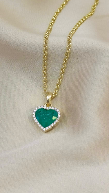 Dije en oro 18k corazon esmeralda y diamantes